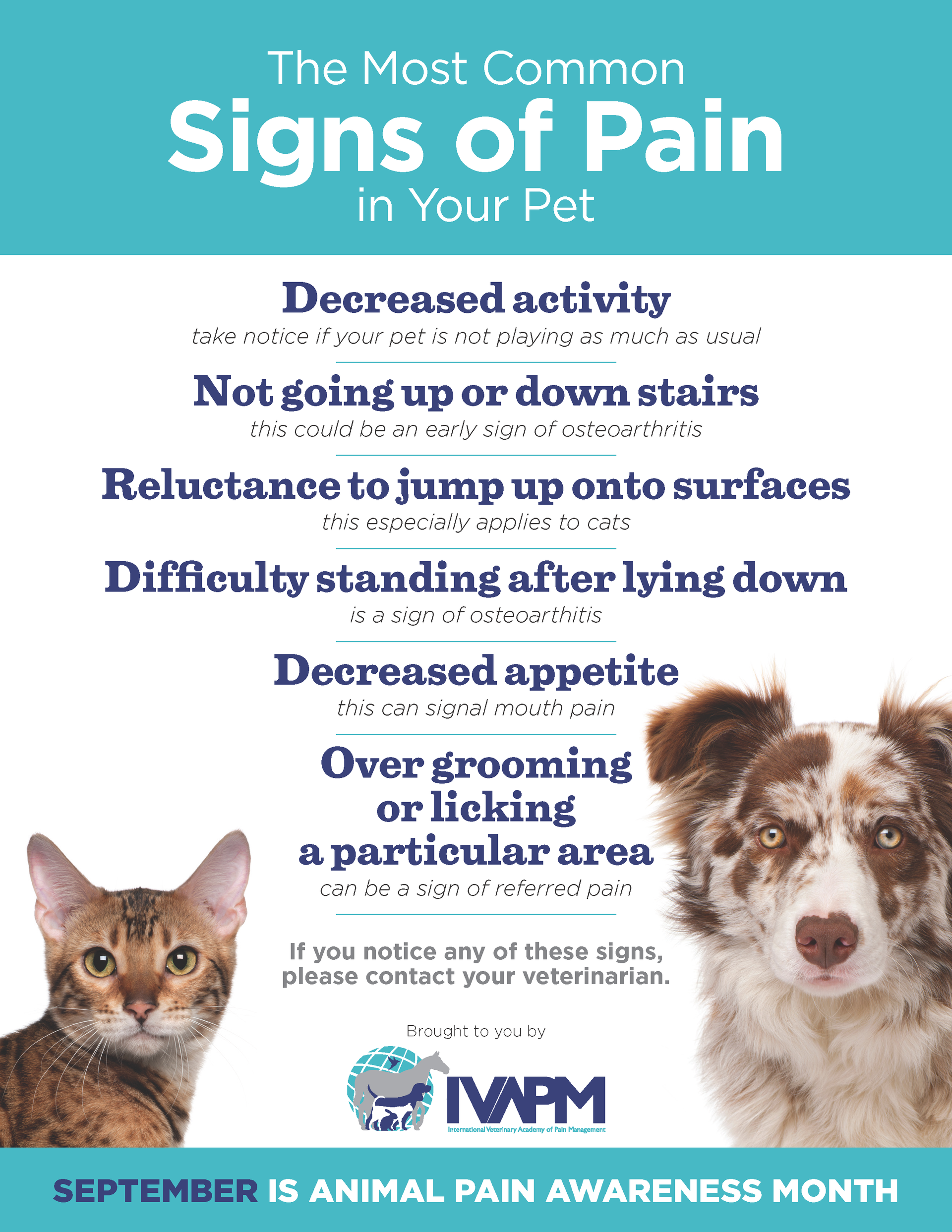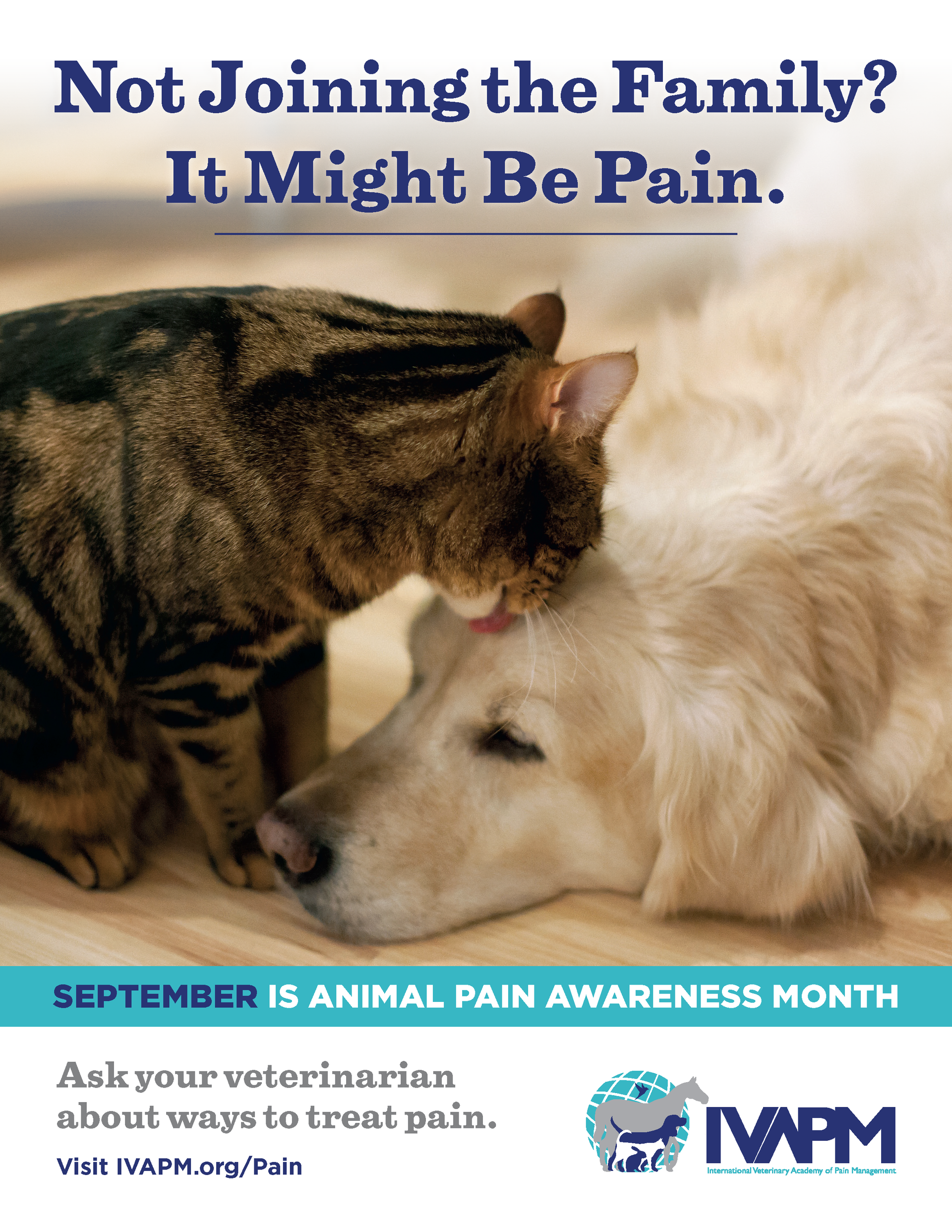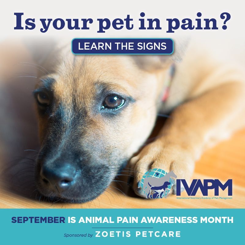 Help IVAPM spread the word on your marketing channels that September is Animal Pain Awareness Month! Download any or all of these digital assets to get the word out. Help your patients learn more about animal pain signs and help your fellow colleagues become an IVAPM Certified Veterinary Pain Practitioner (CVPP).